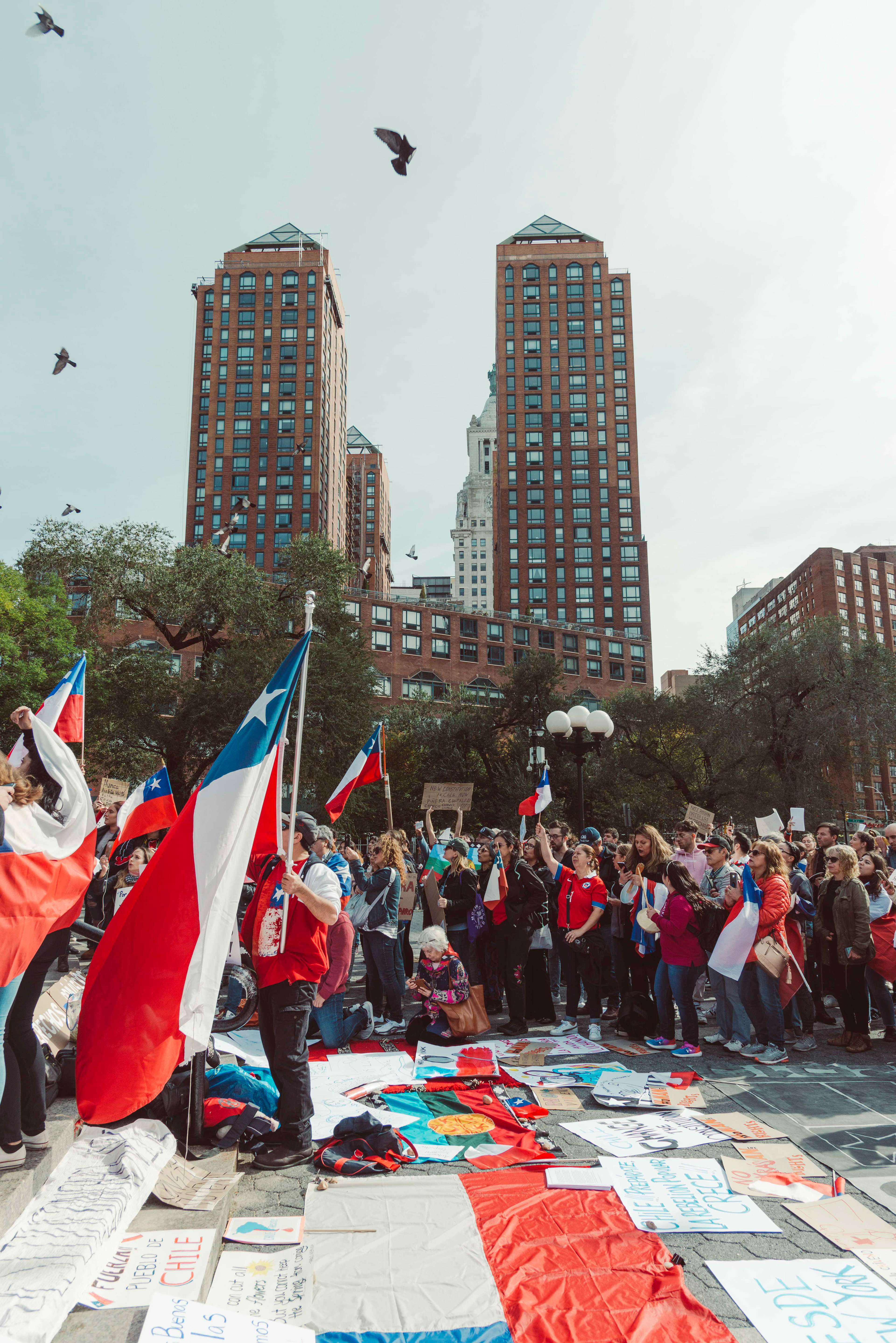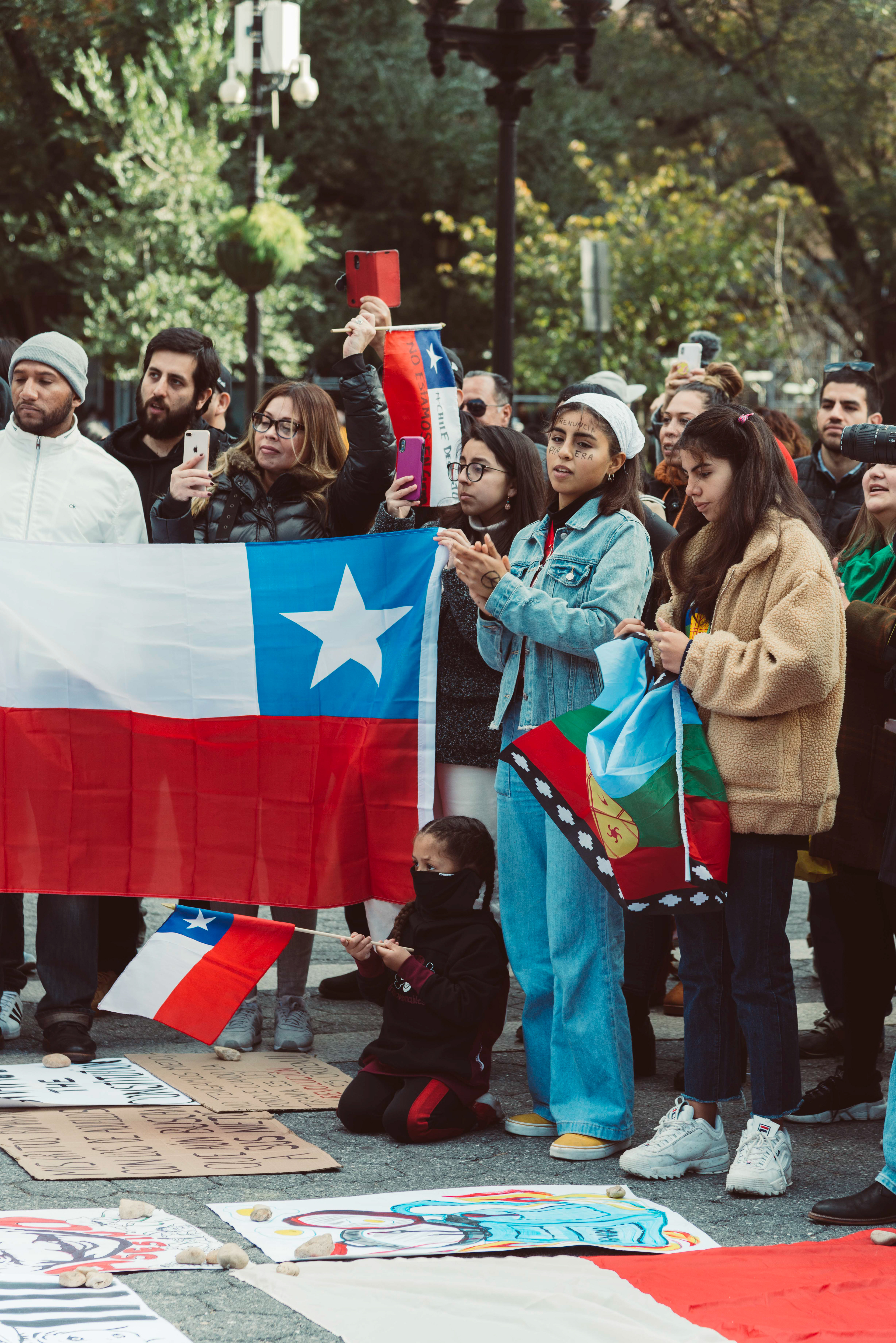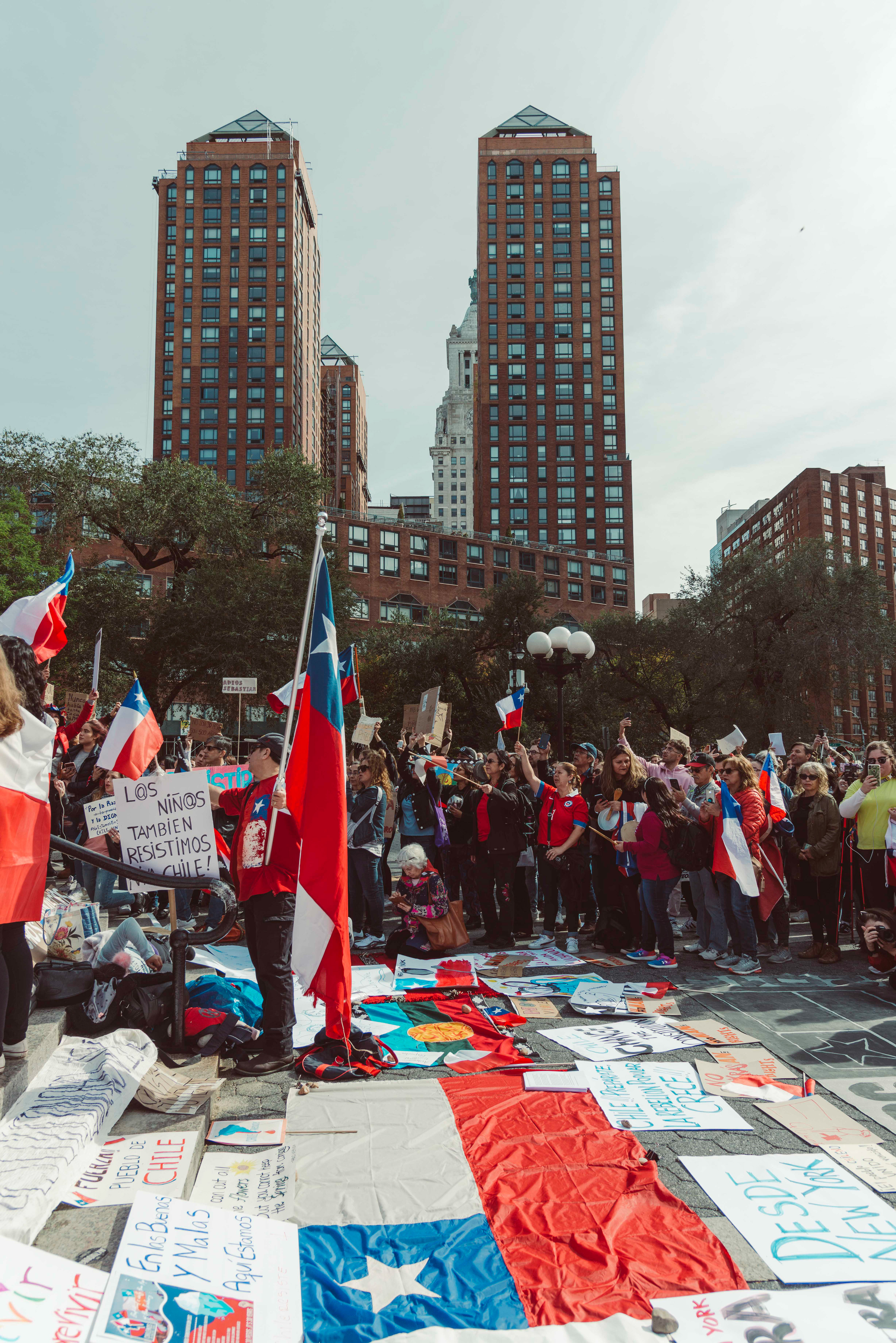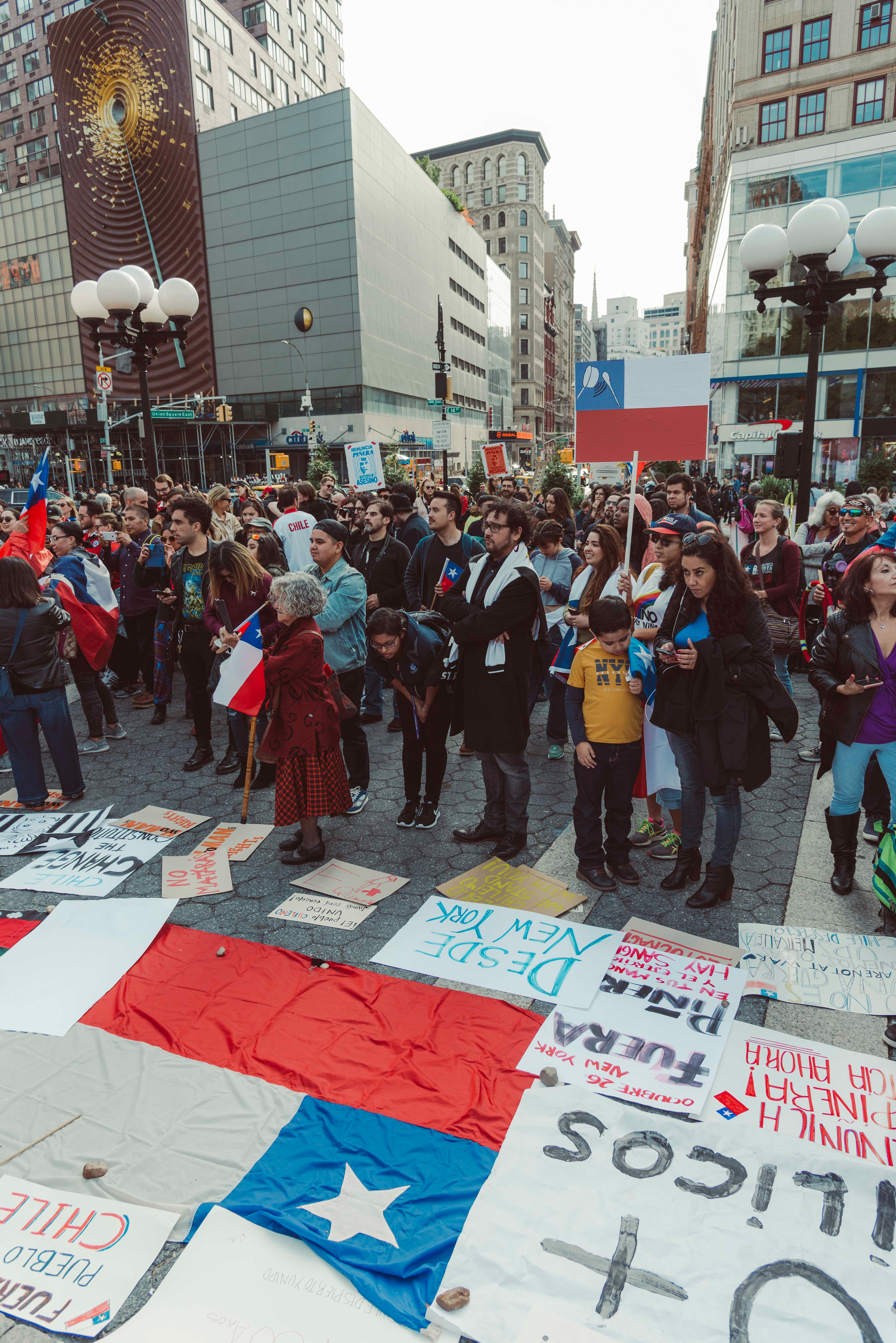 Chileans in NYC protest social inequalities and police brutality.