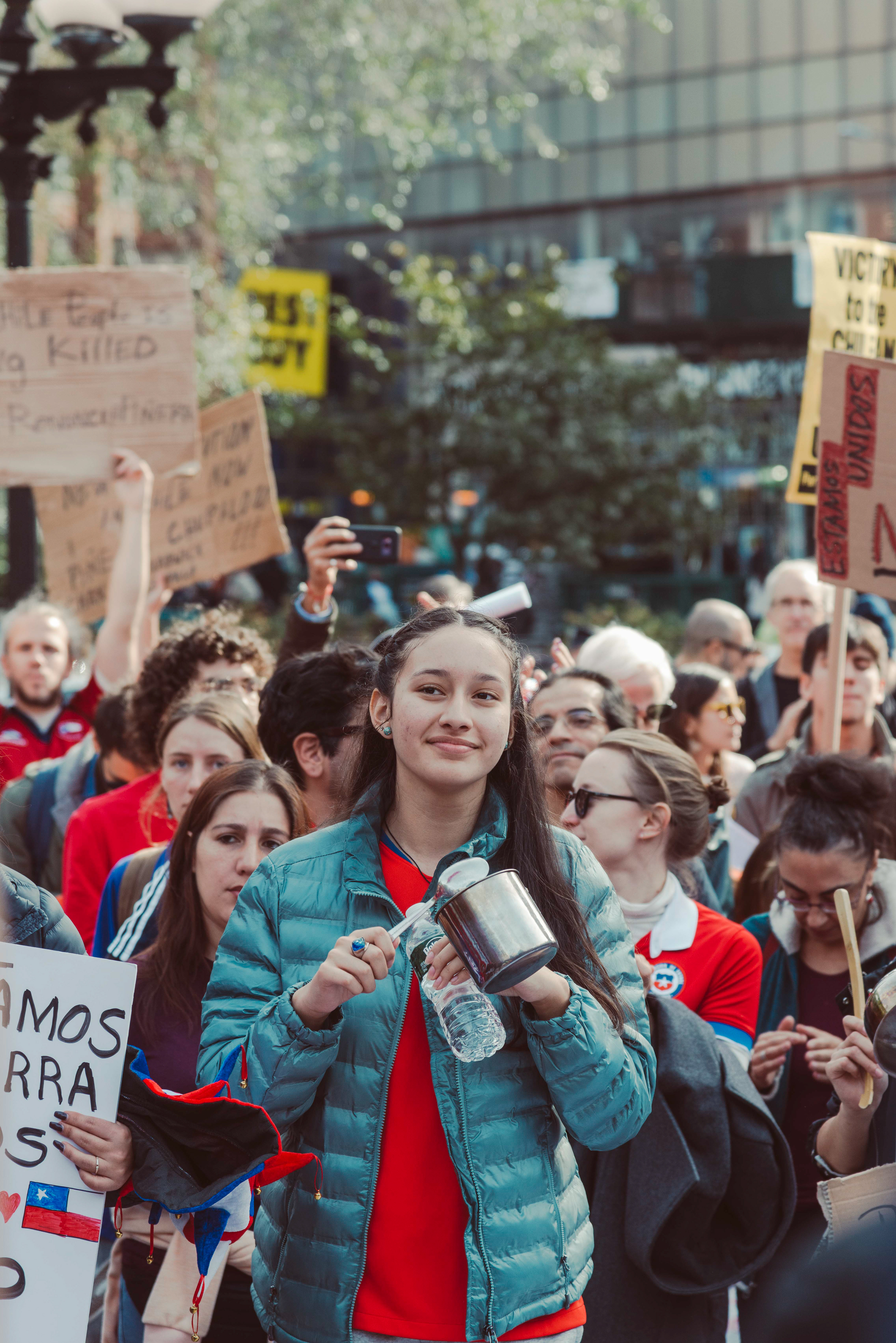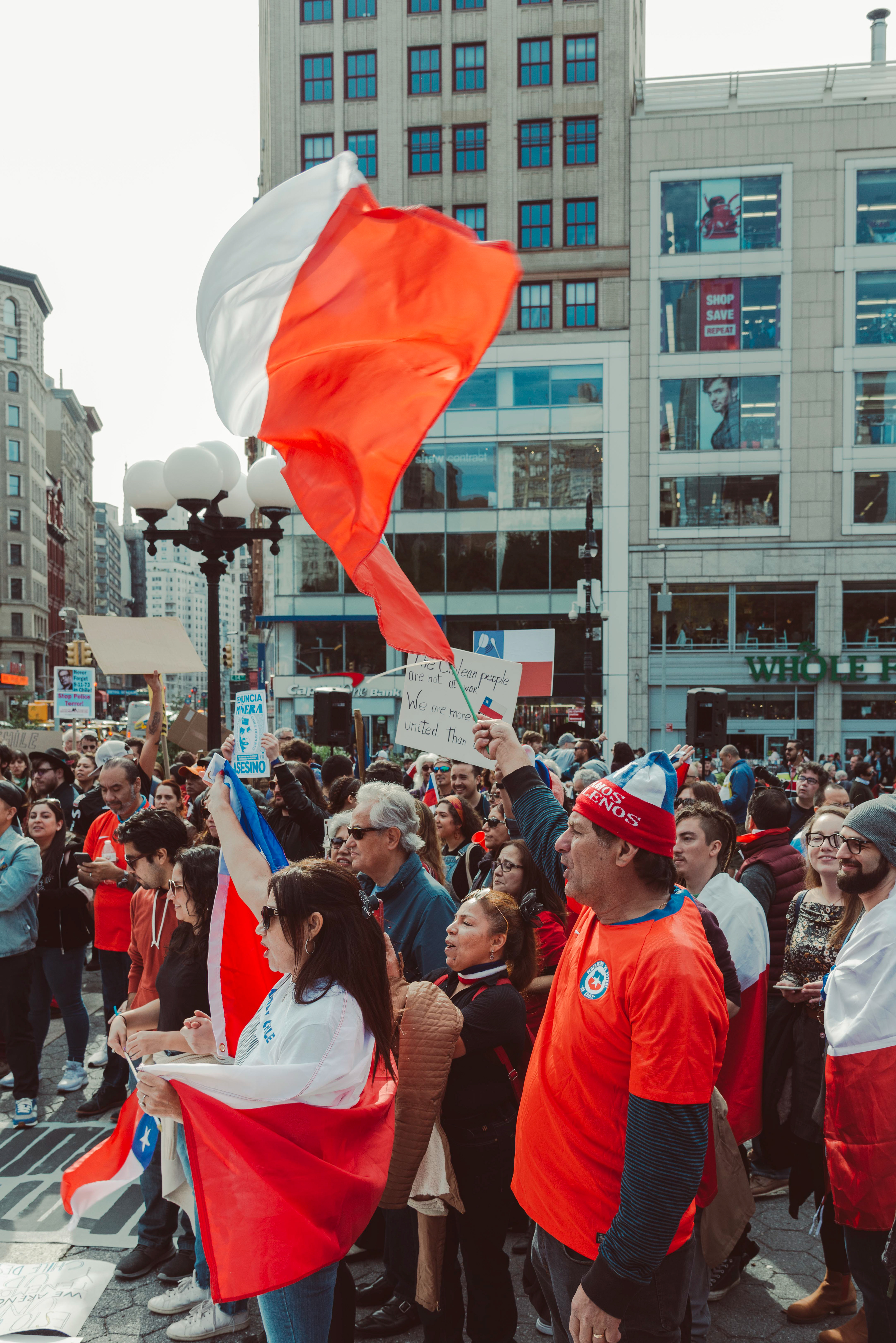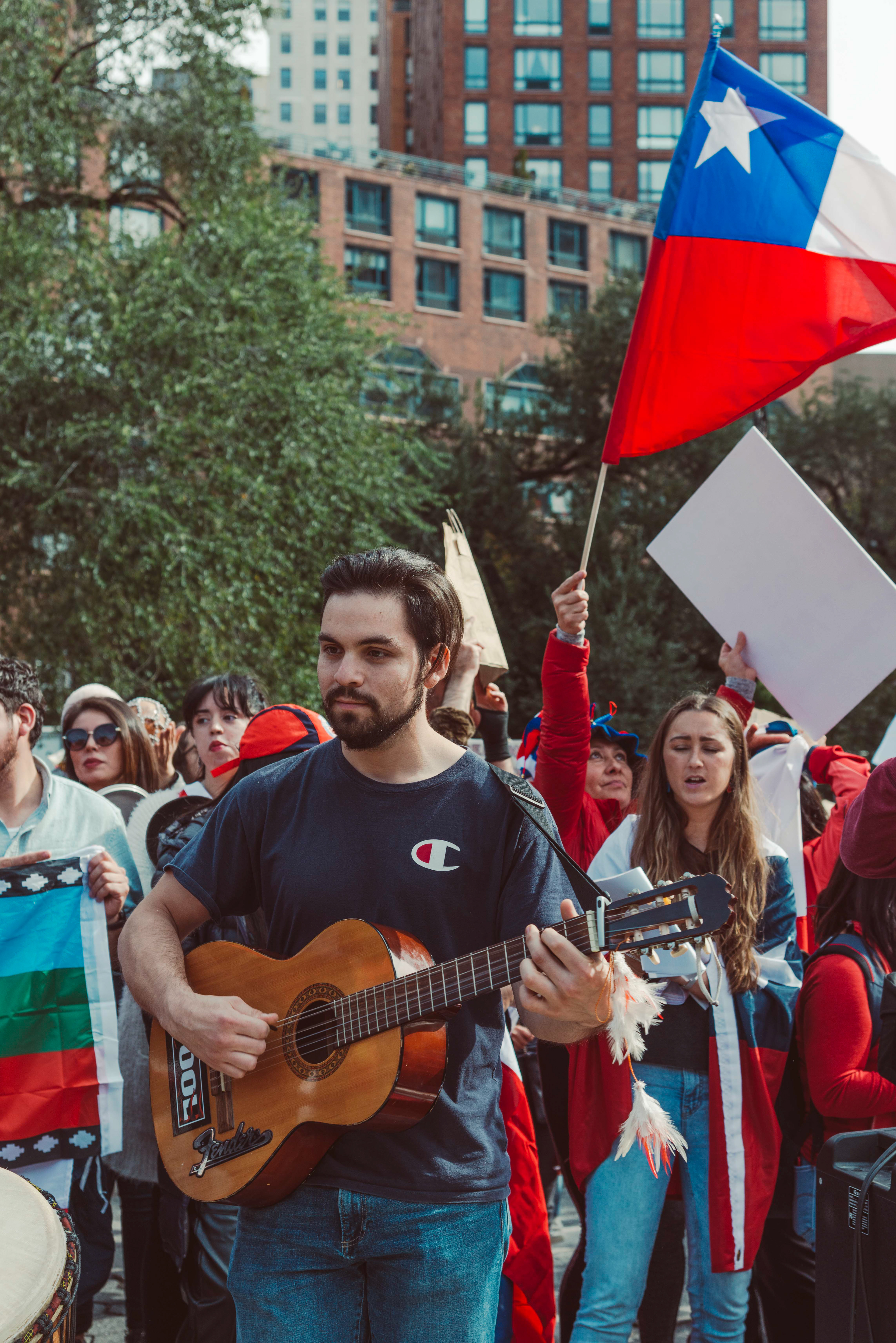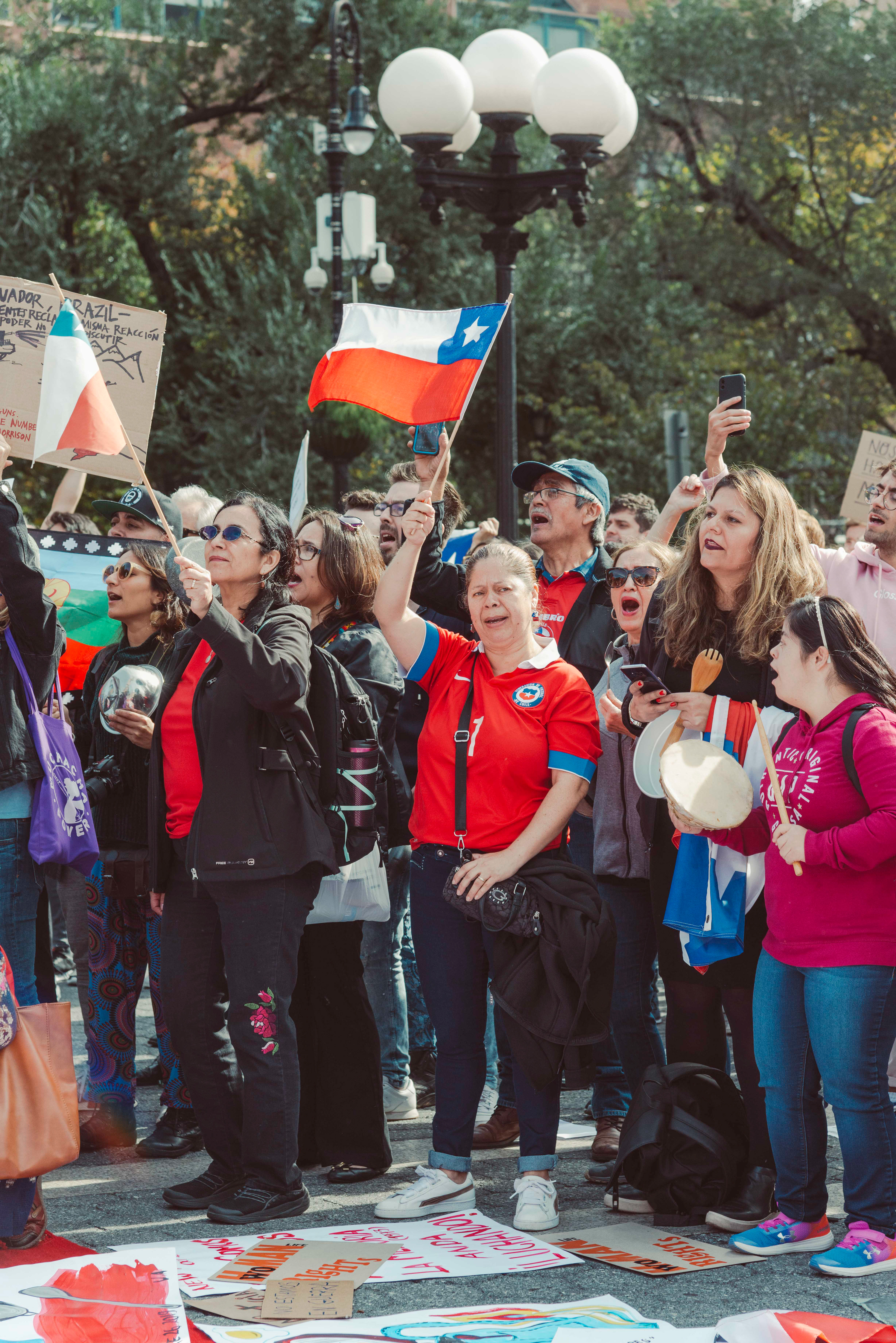 Chileans in NYC protest social inequalities and police brutality.
