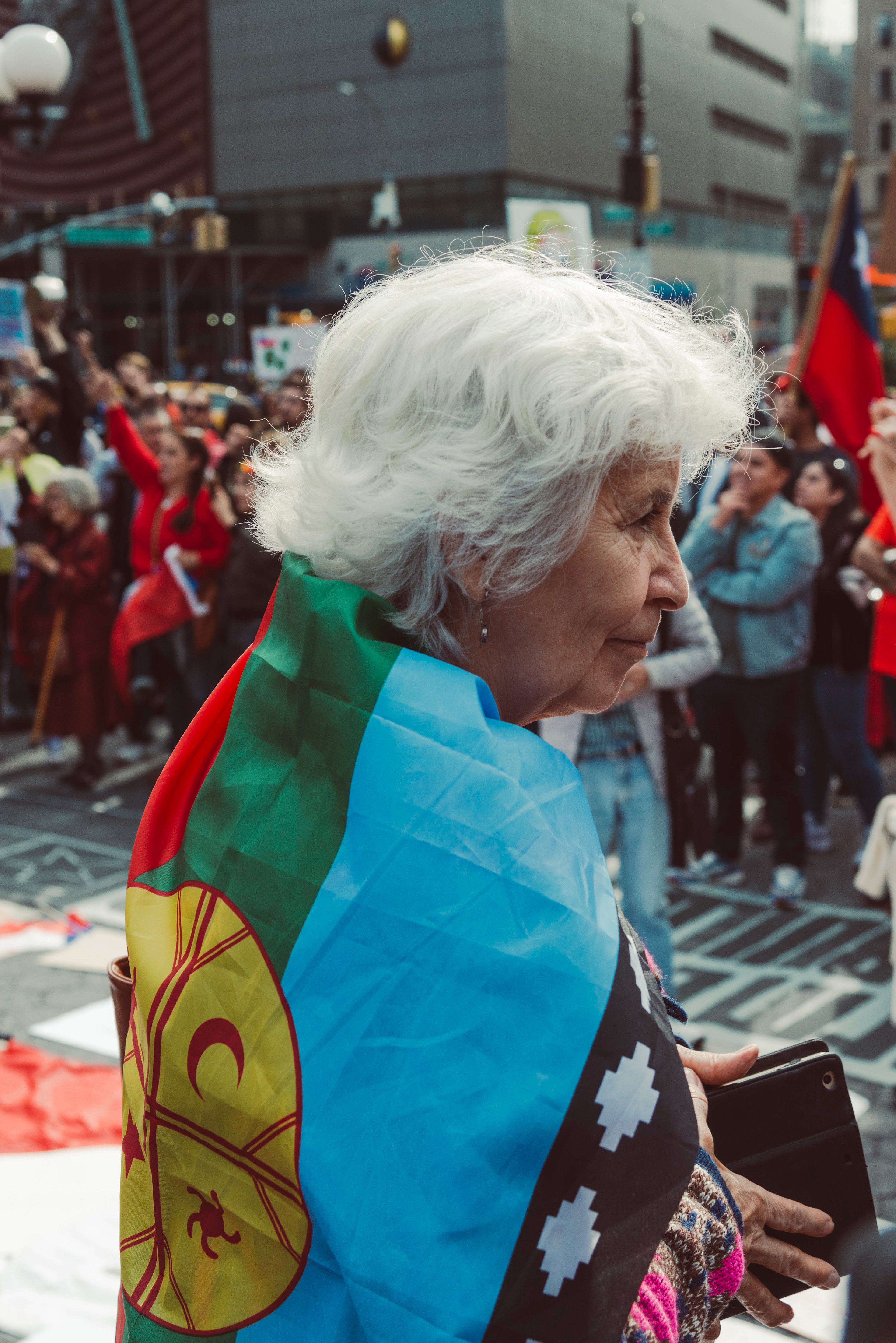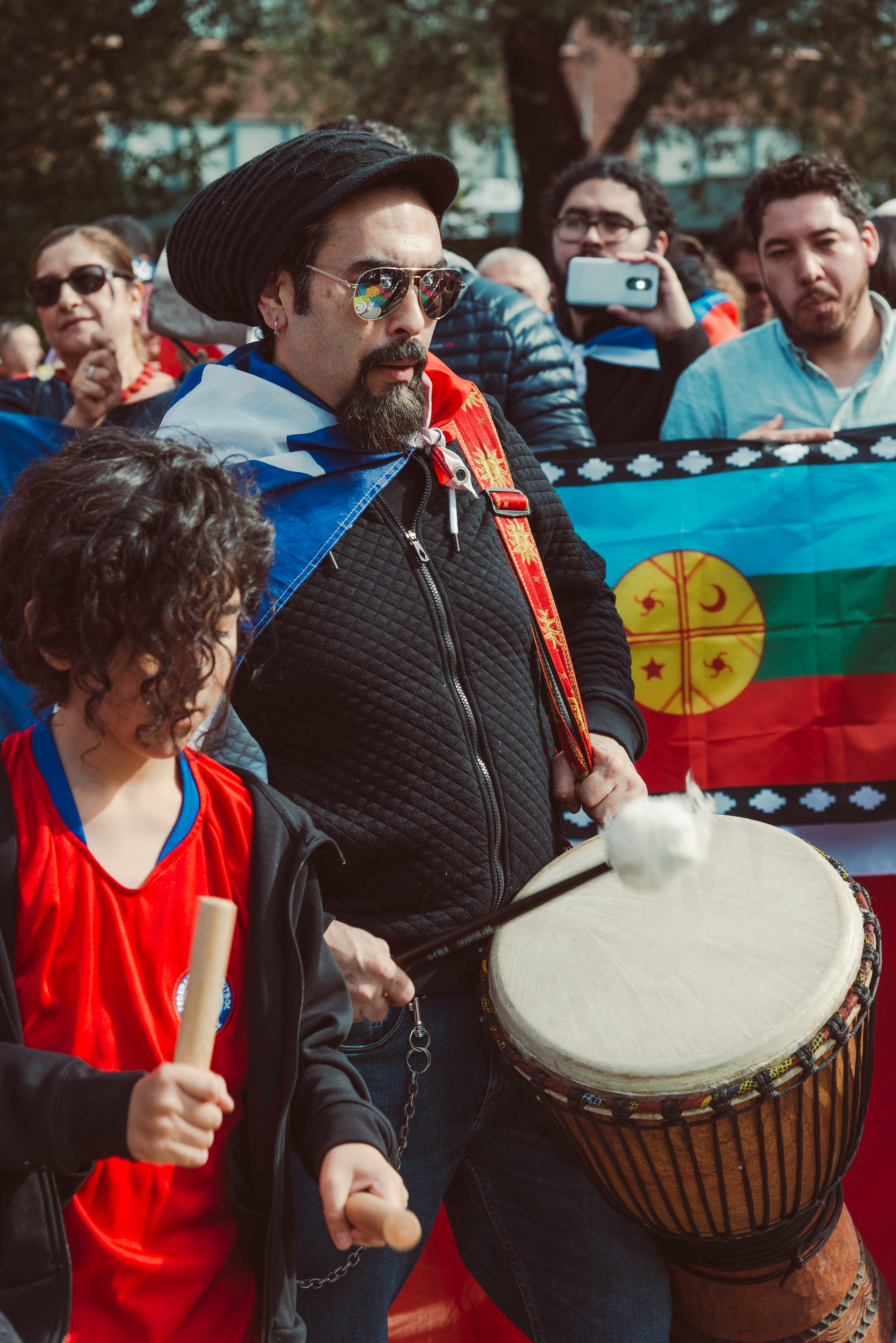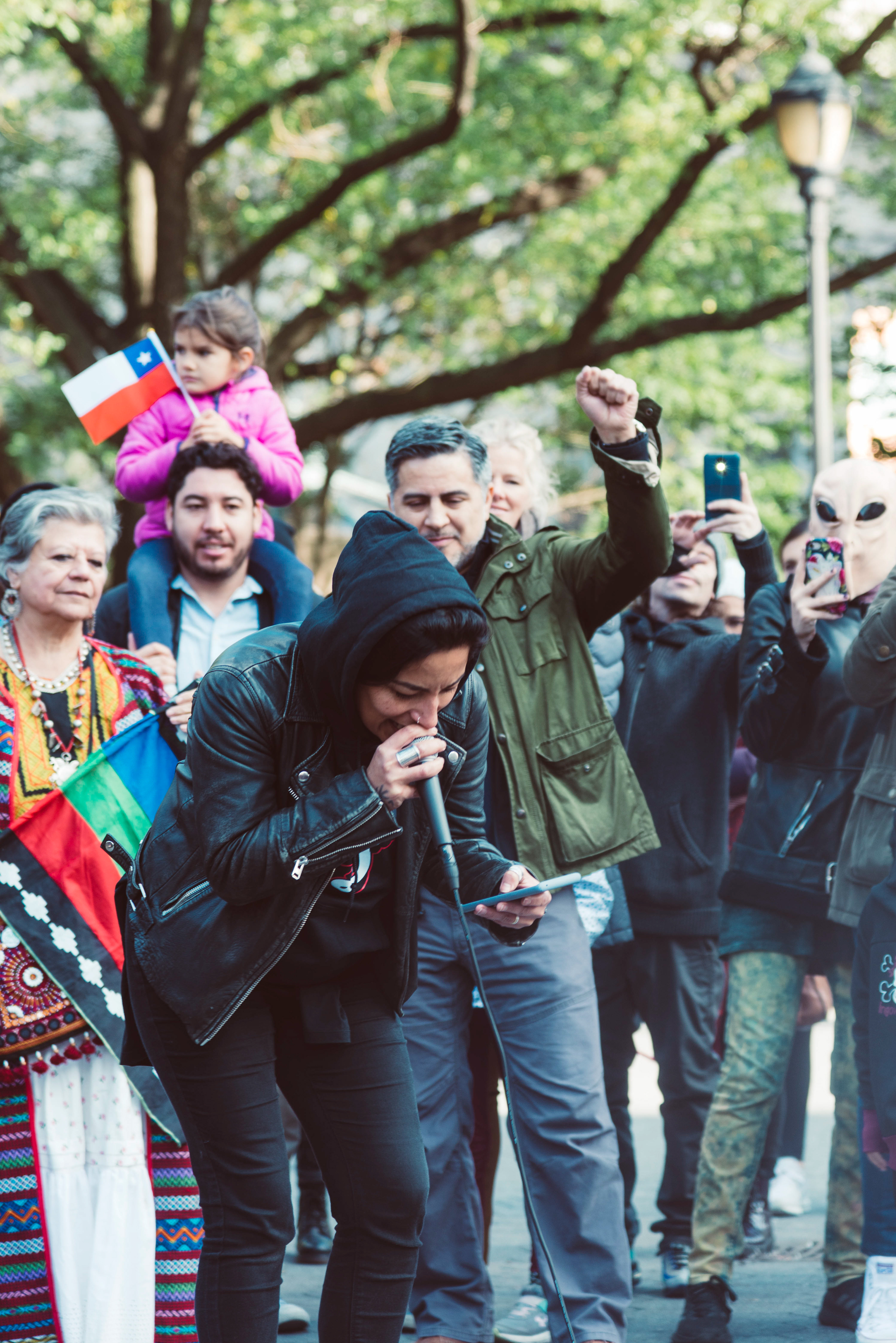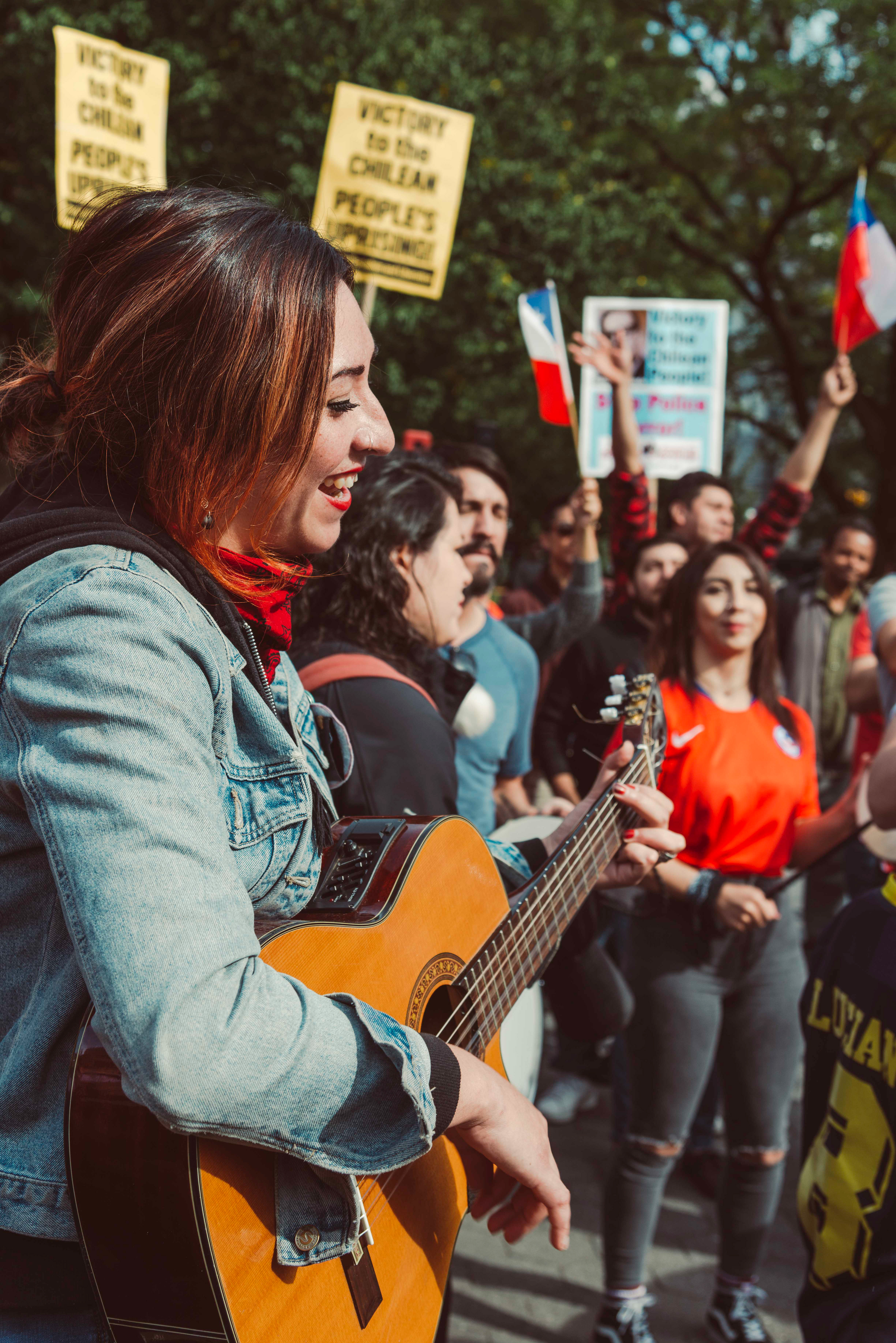 Chileans in NYC protest social inequalities and police brutality.